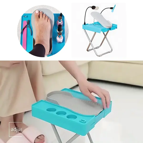 - Nema više savijanja ili istezanja – Podesivi oslonac za noge drži stopala u savršenom položaju za lakiranje noktiju s lakoćom.