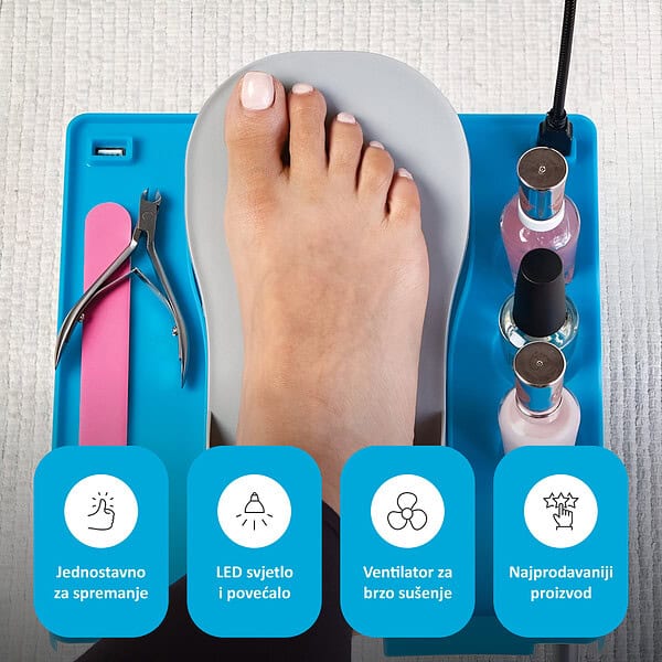 Žena kaže da je ovo revolucija u pedikuri doma! Sve uredno, sušilica izuzetno brza. Lakše je sada njoj, a i meni jer nema više nered po stanu.